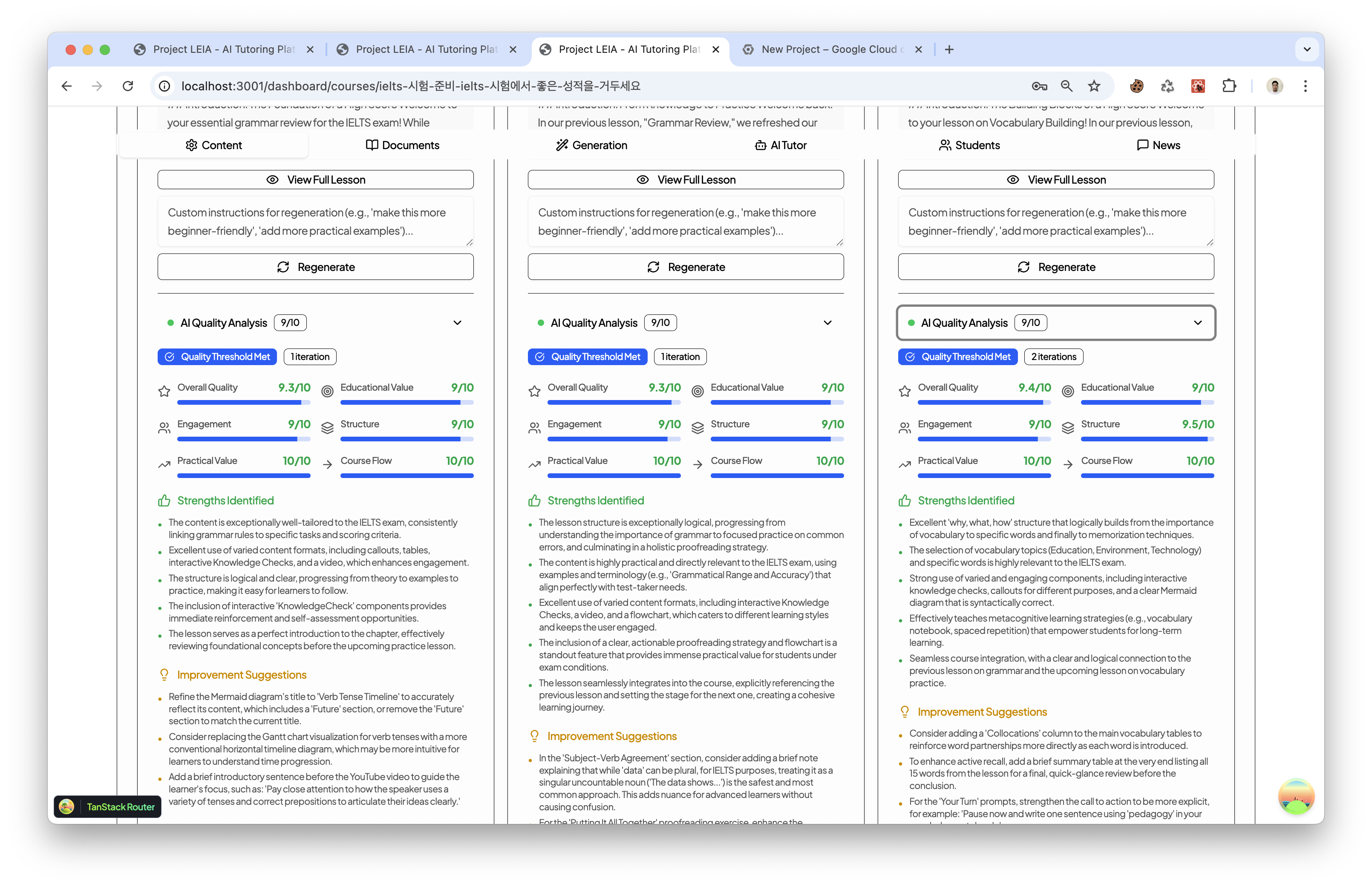 Orchestrated network of autonomous AI agents, each optimized for distinct cognitive functions - course generation, content analysis, and quality assessment.