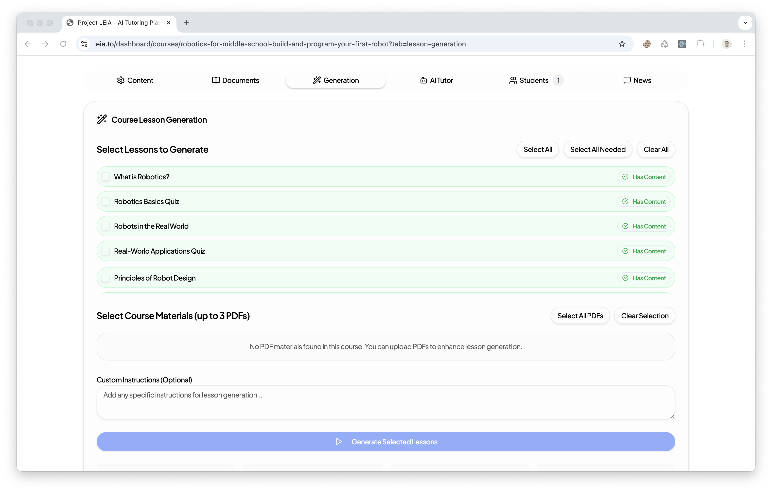 Upload any PDF and watch LEIA's specialized AI agents build complete interactive courses with assessments, voice interaction, and adaptive learning.